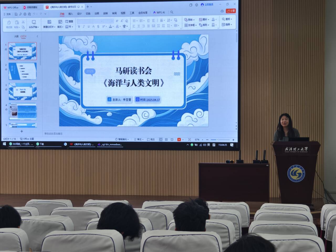 4月17日,SM调教 、交通物流SM调教、船海能动SM调教与余家头图书馆在图书馆七楼报告厅联合举办"中国海洋文化"读书分享会。活动以《海洋与人类文明》为研讨核心,通过多维视角展现海洋文明的独特魅力。